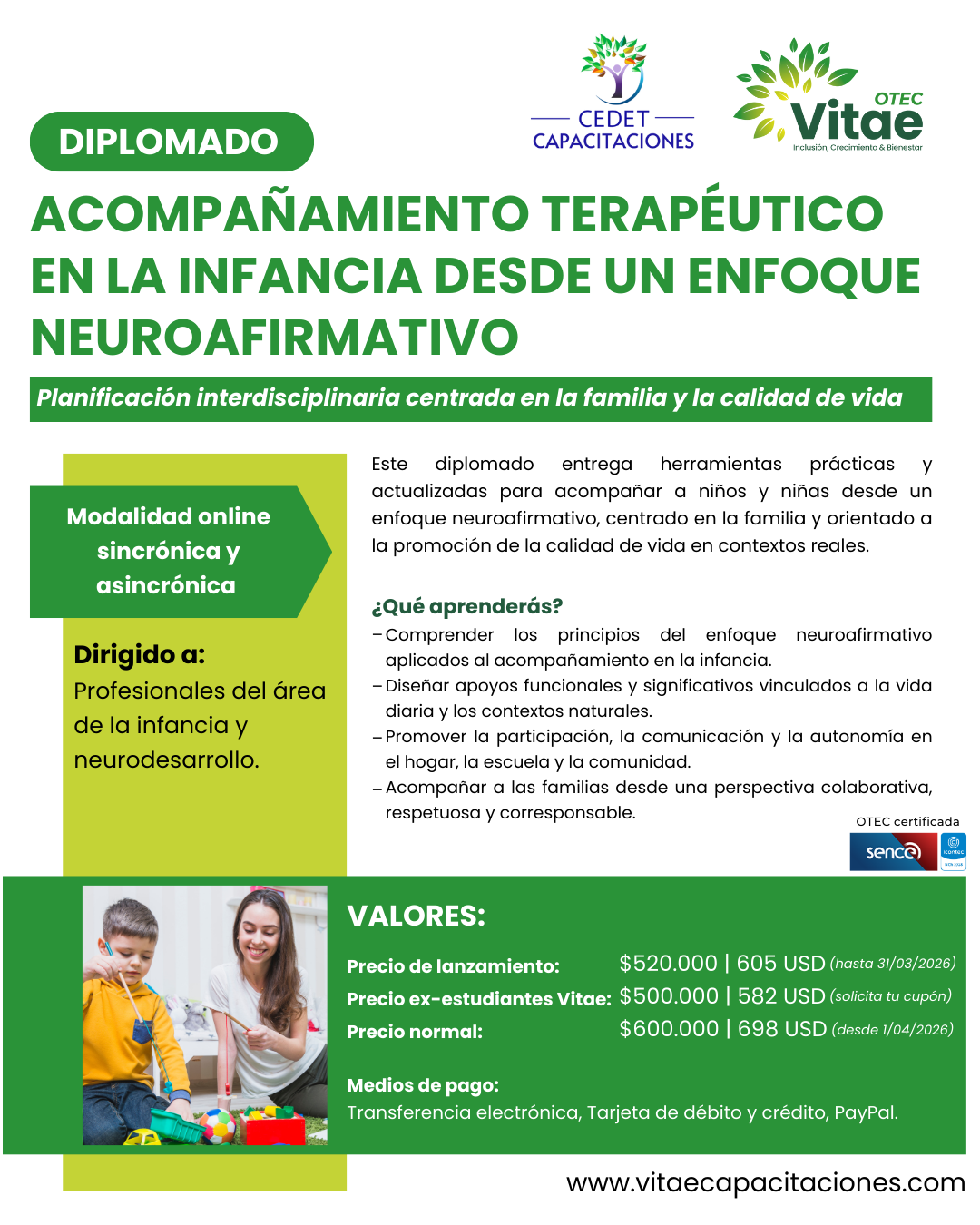 • Precio ex-estudiantes Vitae: $500.000 | 582 USD (solicita tu cupón promocional)